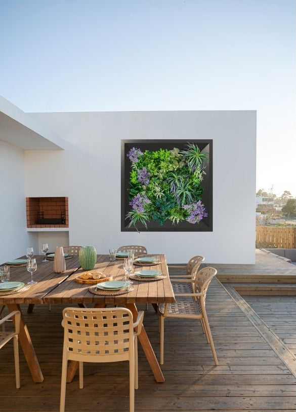 ‘Purple Splash’ is a vibrant statement piece within the collection — bringing rich colour, depth and texture to garden walls, fences, patios and outdoor living areas. Inspired by the look of lush foliage panels, this design offers all the visual impact without the maintenance.