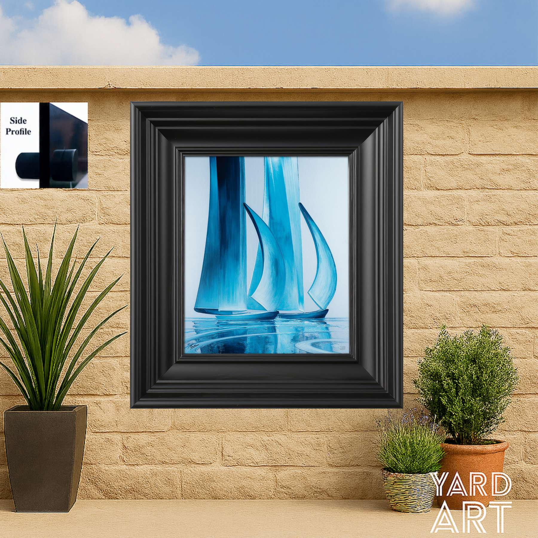 Presented in a bold contemporary frame this piece works as a standalone feature or as part of the Sailing Series collection. It is ideal for garden walls courtyards patios and outdoor living areas bringing a sense of coastal calm and refined seaside style to any space.