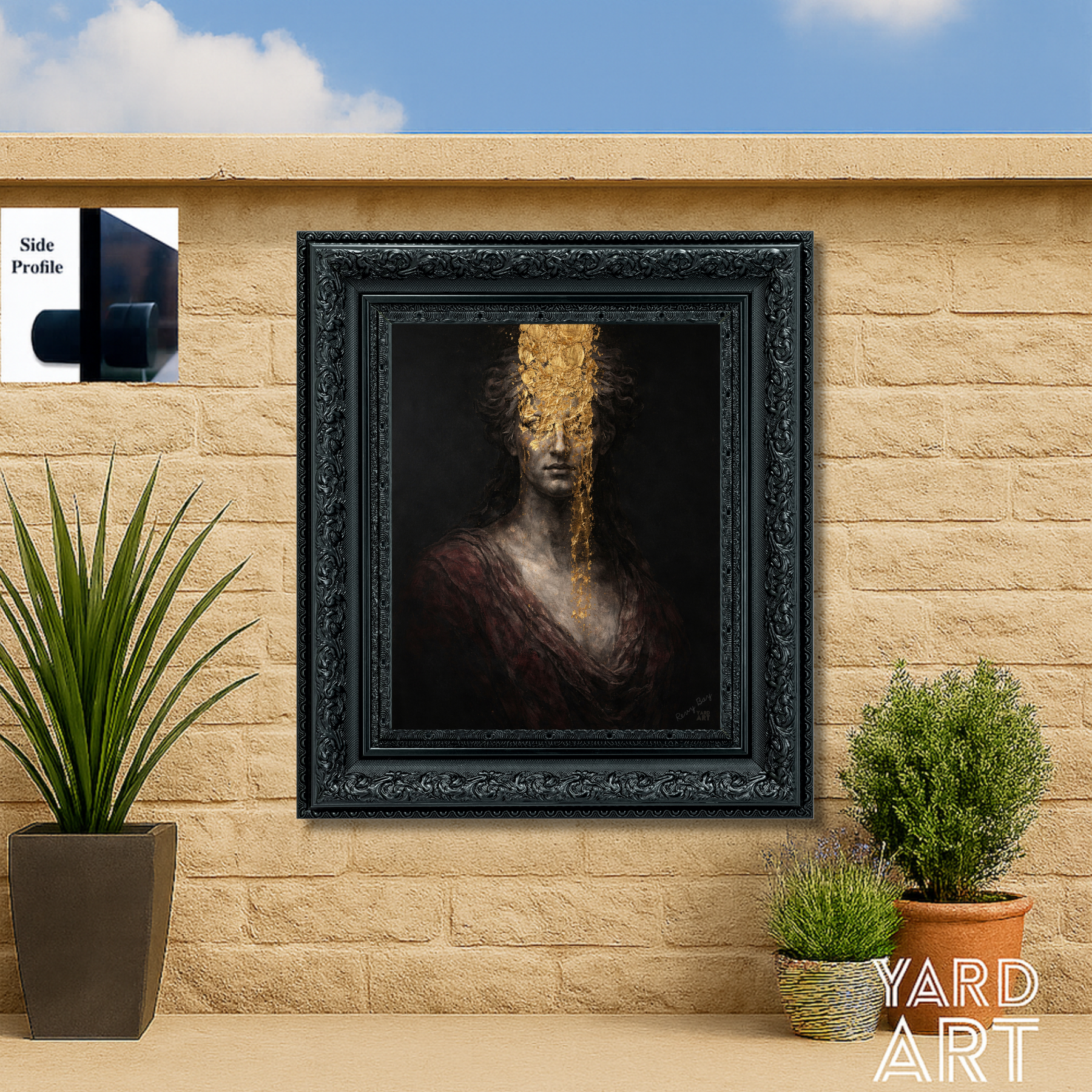 Rooted in classical Renaissance aesthetics yet elevated through contemporary gilding, this artwork balances softness with intensity. Printed onto outdoor-grade acrylic, it delivers the appearance of a richly framed vintage piece while offering modern durability for long-term display.